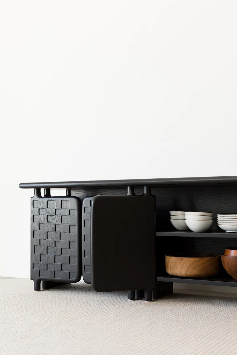Another small detail (that some don't notice) is that the grid pattern changes on each panel. Six unique panels make up the outer surfaces of the credenza. It's a lot of work to make, but it's worth it!”