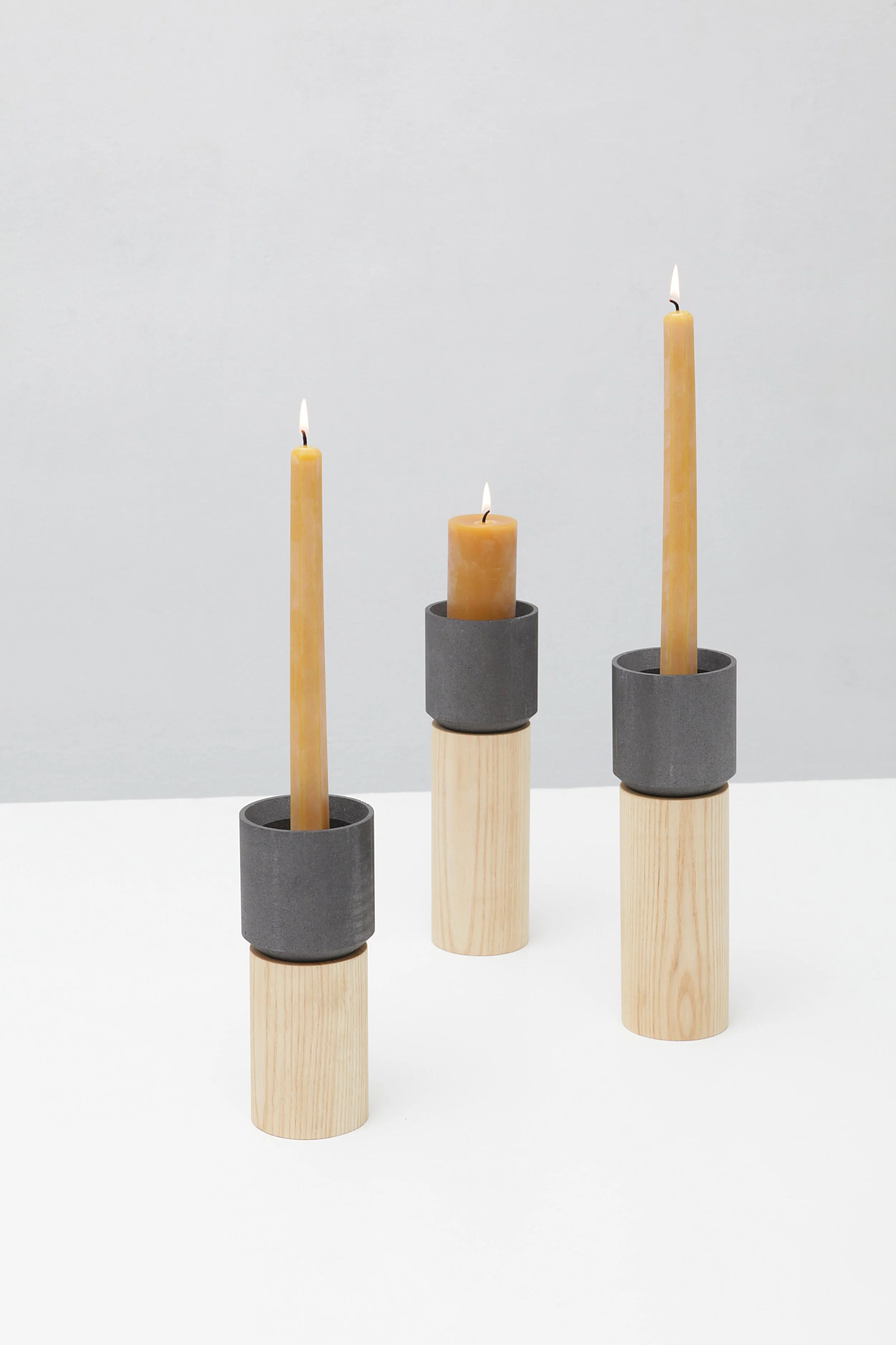 Above and below are our Stick Candle Holders made of graphite, FSC certified ash and brass. You can now find them on our site with a choice of Oregon-made beeswax candles from tapers to pillars.