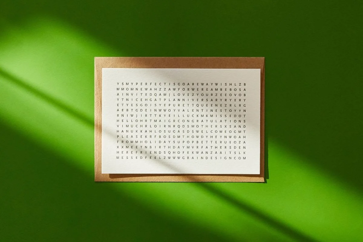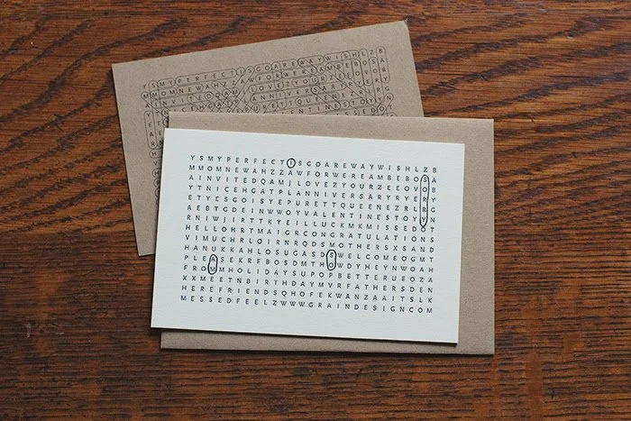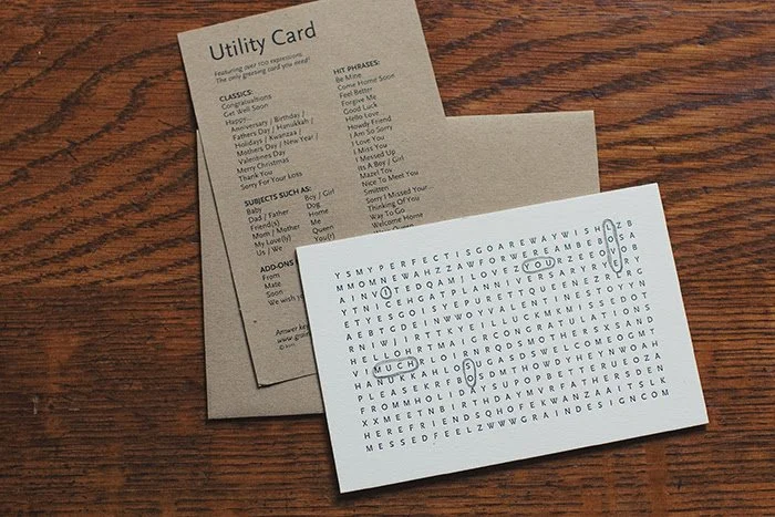 Originally launched in 2013, our Utility Card is a word search puzzle that includes over 100 salutations. It is our attempt at a minimalist greeting card - the last one you'll ever need.